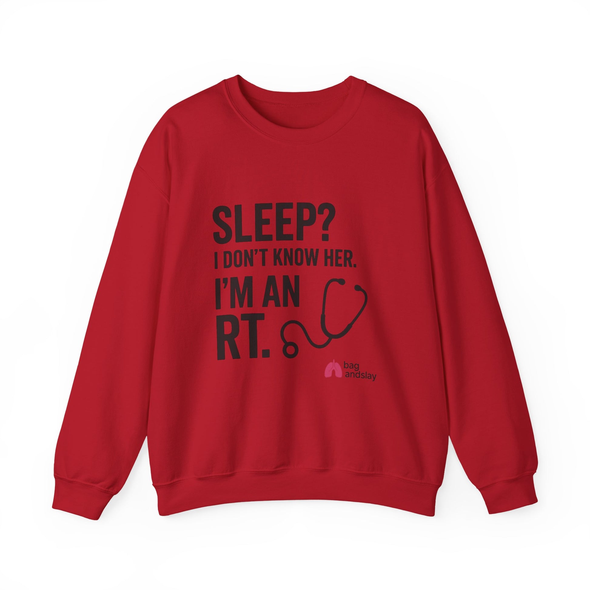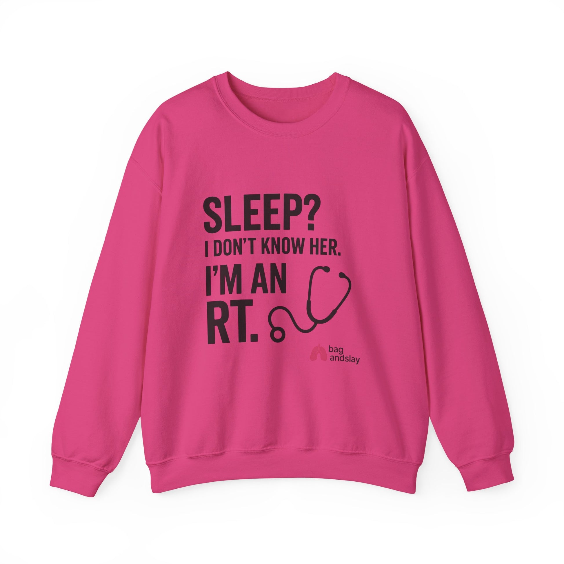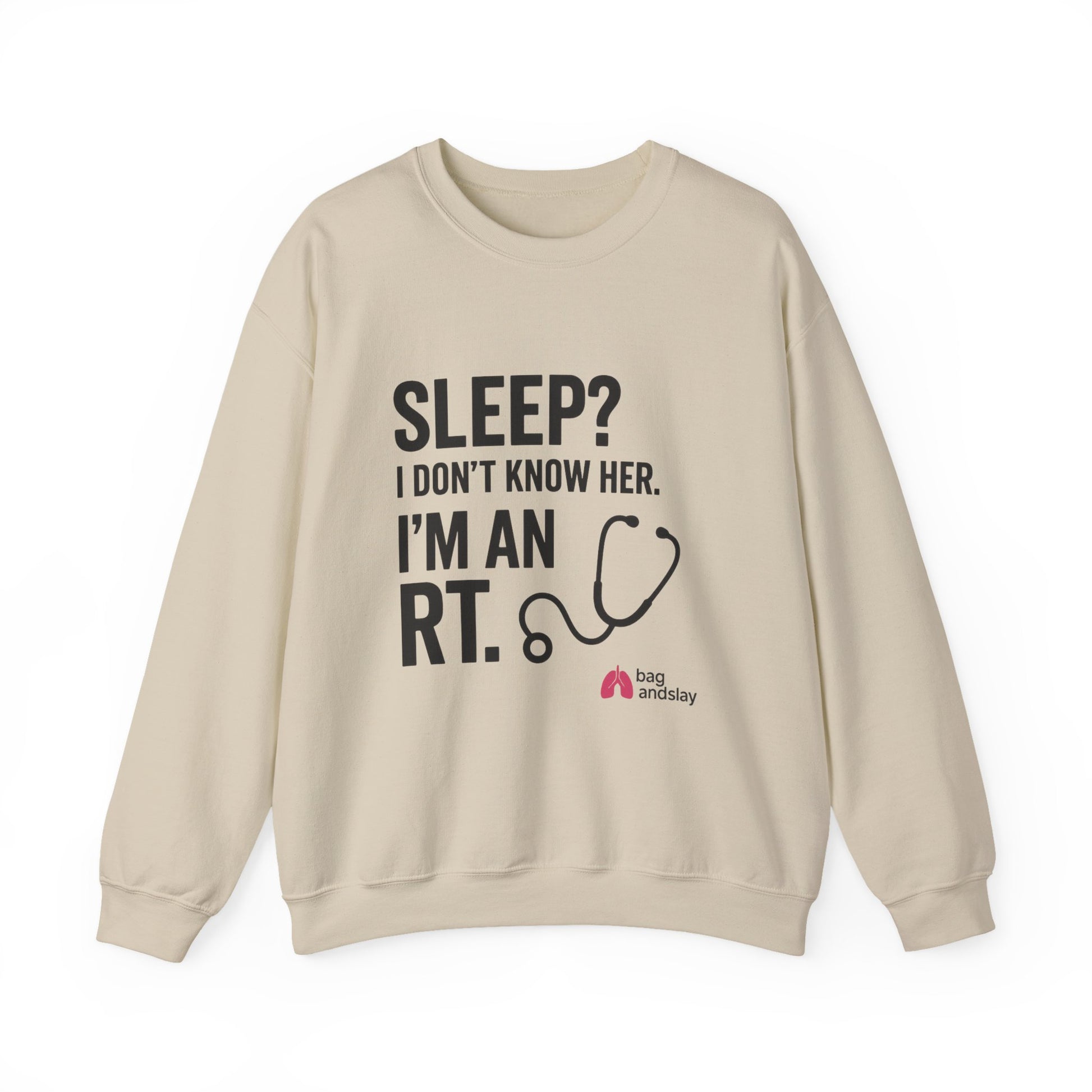 "Sleep? I Don’t Know Her. I’m an RT." – Unisex Crewneck Sweatshirt